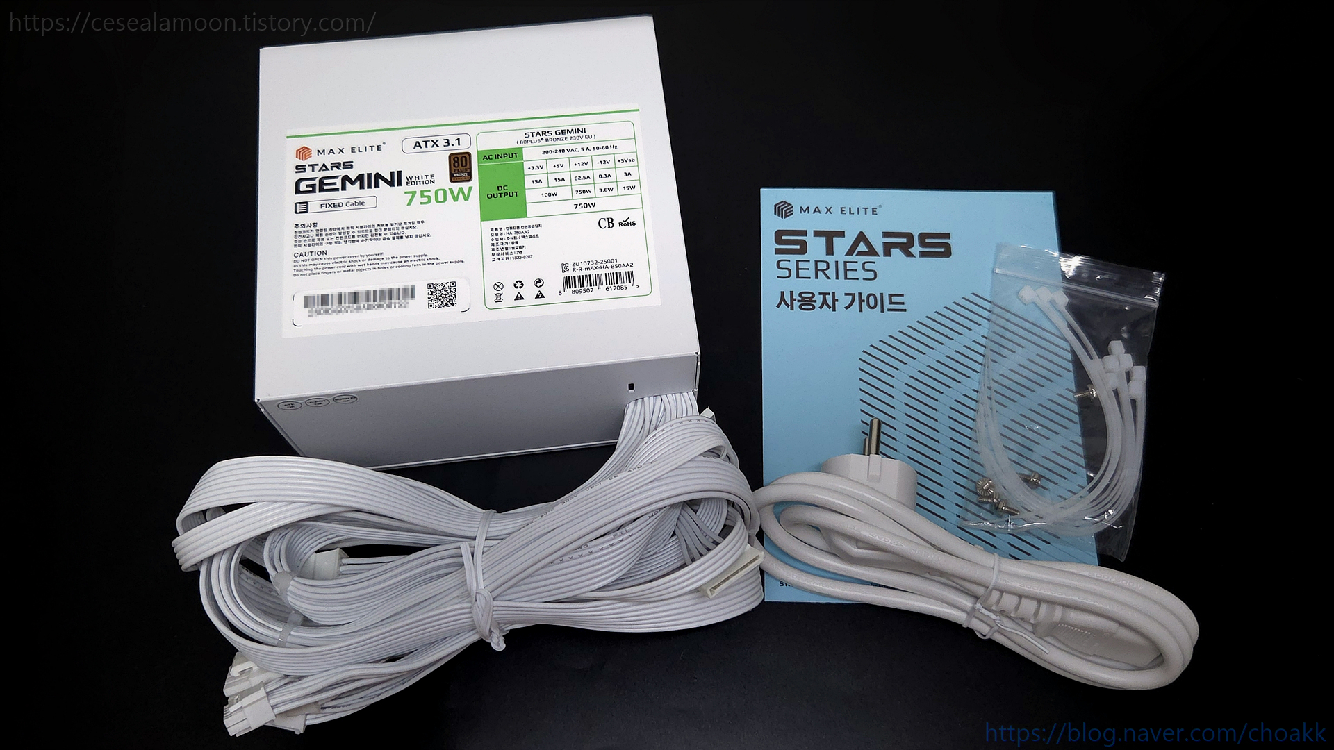맥스엘리트 STARS GEMNI 750W 화이트 파워 본체와