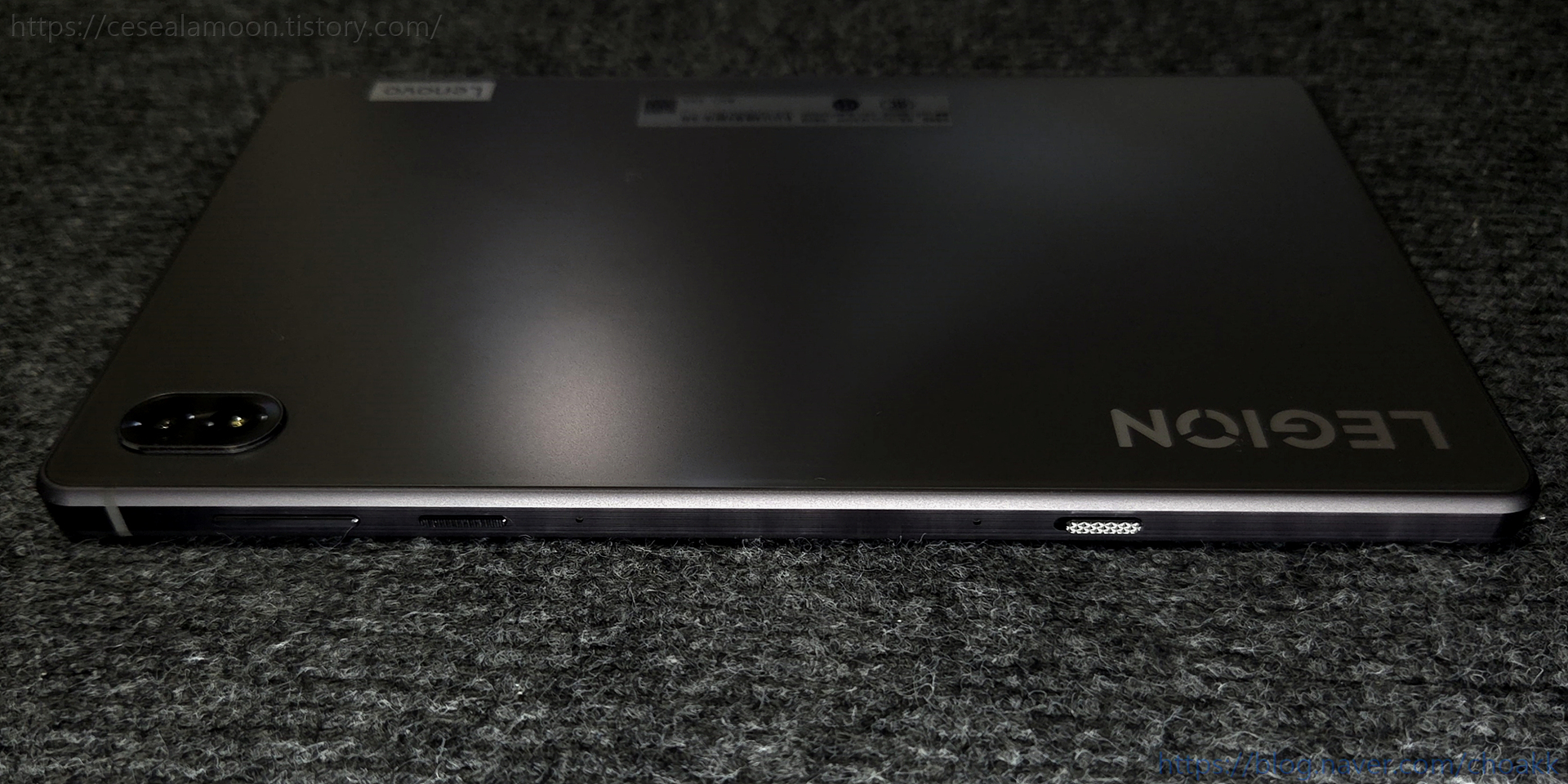후면은 반짝이는 LEGION 로고와 반광 재질의 회색이 사용되고 있습니다.