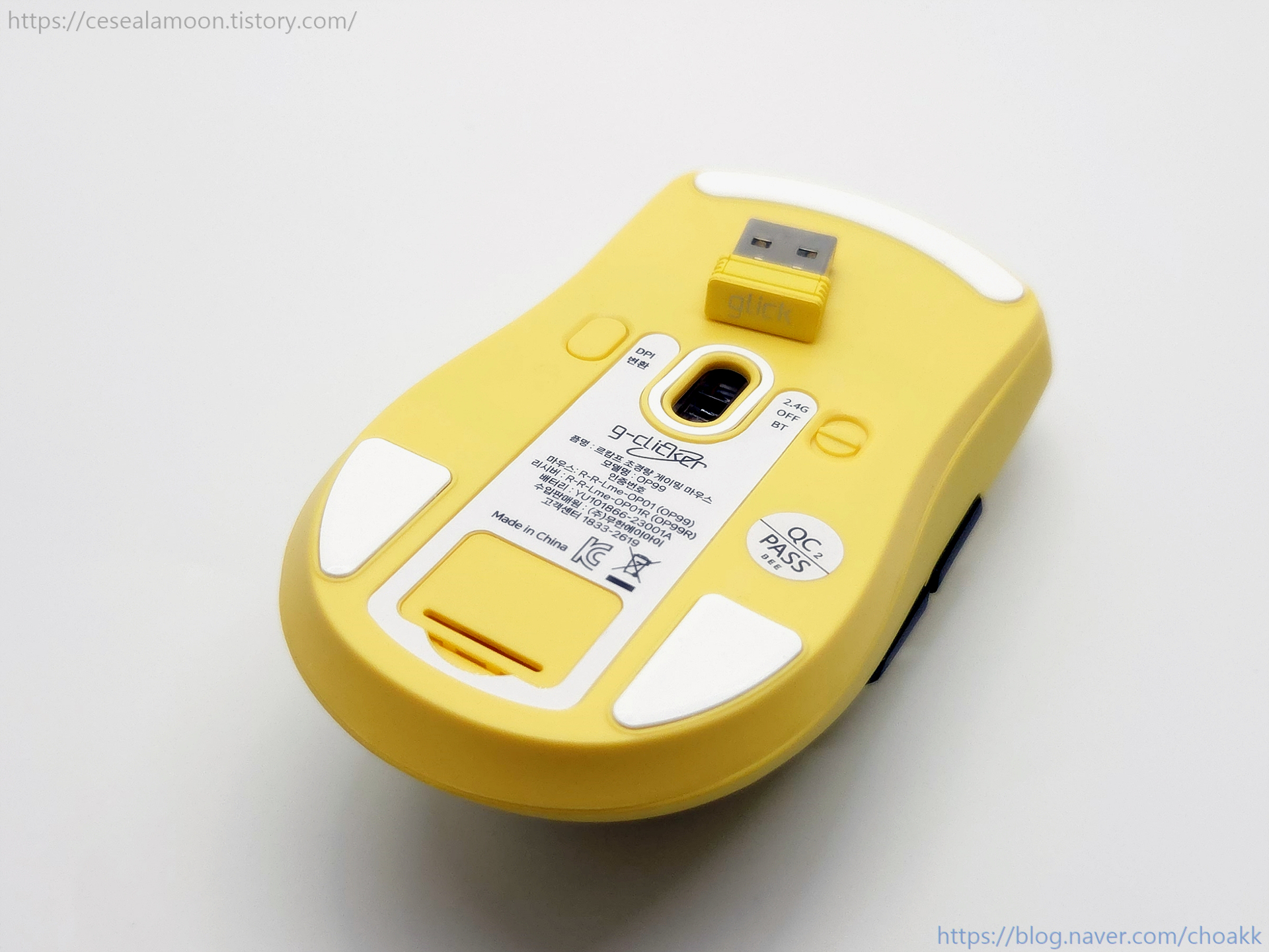 아래쪽에는 glick 문구가 새겨진 마우스 무선 리시버가 깜찍하게 수납되어 있었네요.