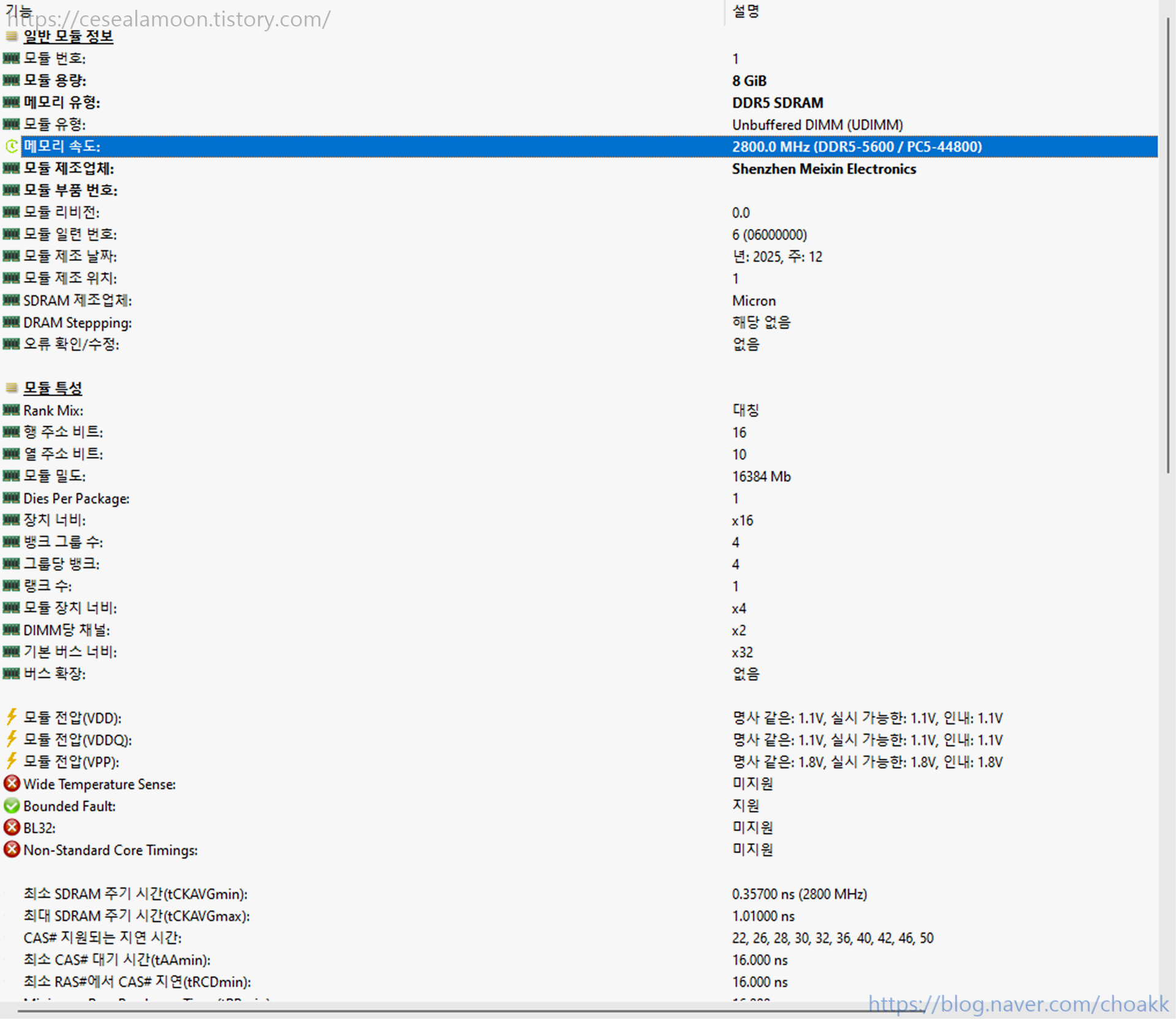 DRAM 모듈 정보나 동작 클럭이나 마이크론의 DDR5-5600 를 베이스로 만든 거 같습니다.