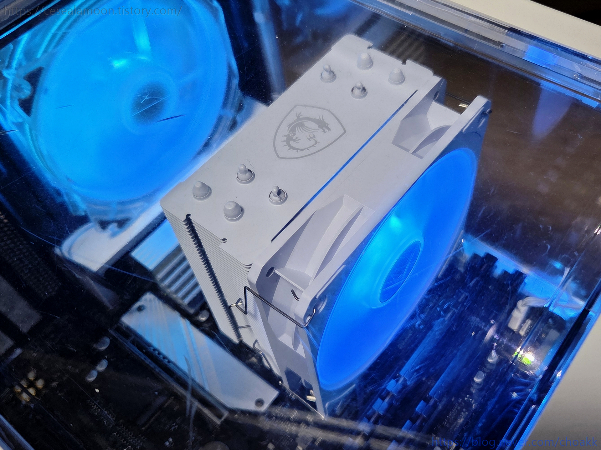 쿨러는 MSI AA13 화이트 쿨러를 장착해 줬는데, 화이트 감성이 충분하군요.